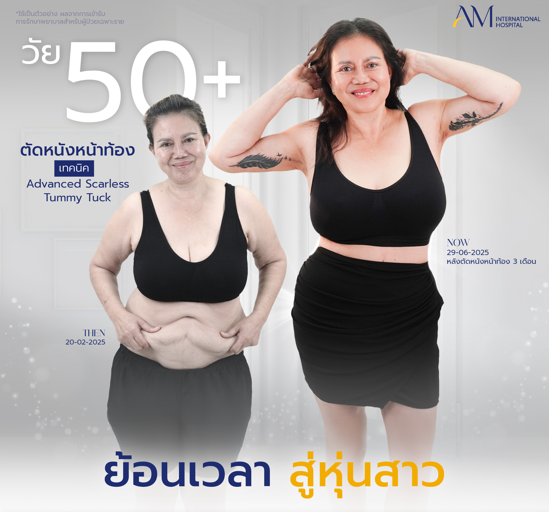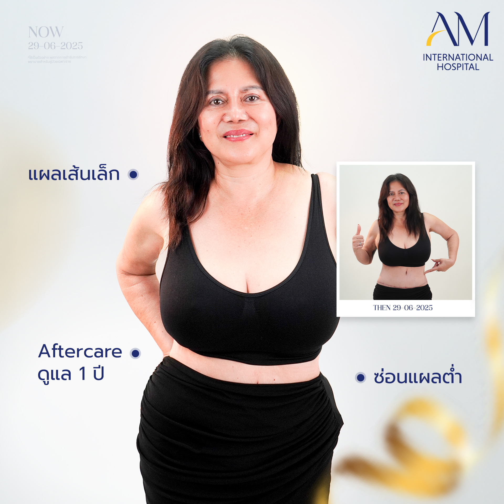 สำหรับเคสที่มีปัญหาหน้าท้องย้วย ท้องย้วย และผิวหย่อนคล้อยจากการผ่าตัดเดิม การดูแลหลังผ่าตัดมีผลโดยตรงต่อทั้งการฟื้นตัวและรูปทรงของหน้าท้องในระยะยาว ทาง AM International Hospital จึงให้ความสำคัญกับโปรแกรม Aftercare ควบคู่กับการผ่าตัด เพื่อช่วยลดบวม ลดความตึง และสนับสนุนการฟื้นฟูของเนื้อเยื่ออย่างเหมาะสมตามหลักการแพทย์